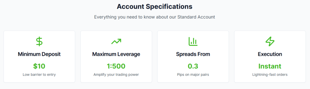 StriveFX offers a simplified account structure designed for users of different experience levels. Unlike complex tier systems, they offer three main variations based on deposit size and cost structure.