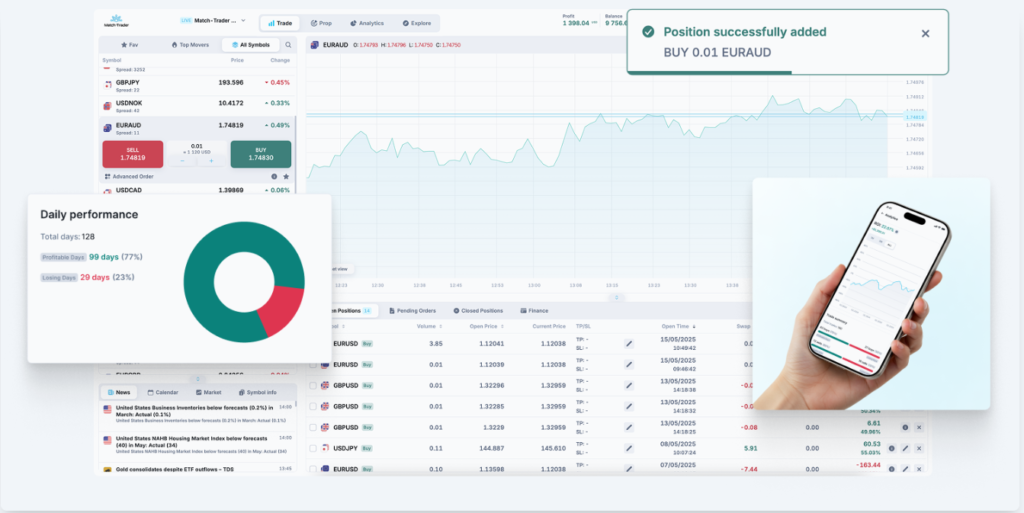 Match-Trader is built for traders who need a platform that is fast, flexible, and synced across all devices. It combines a lightweight, user-friendly design with features like EA support and social trading. For those managing multi-asset portfolios, the desktop version offers customizable layouts and multi-monitor support, giving you the professional workspace needed for algorithmic success without the complexity of older platforms.